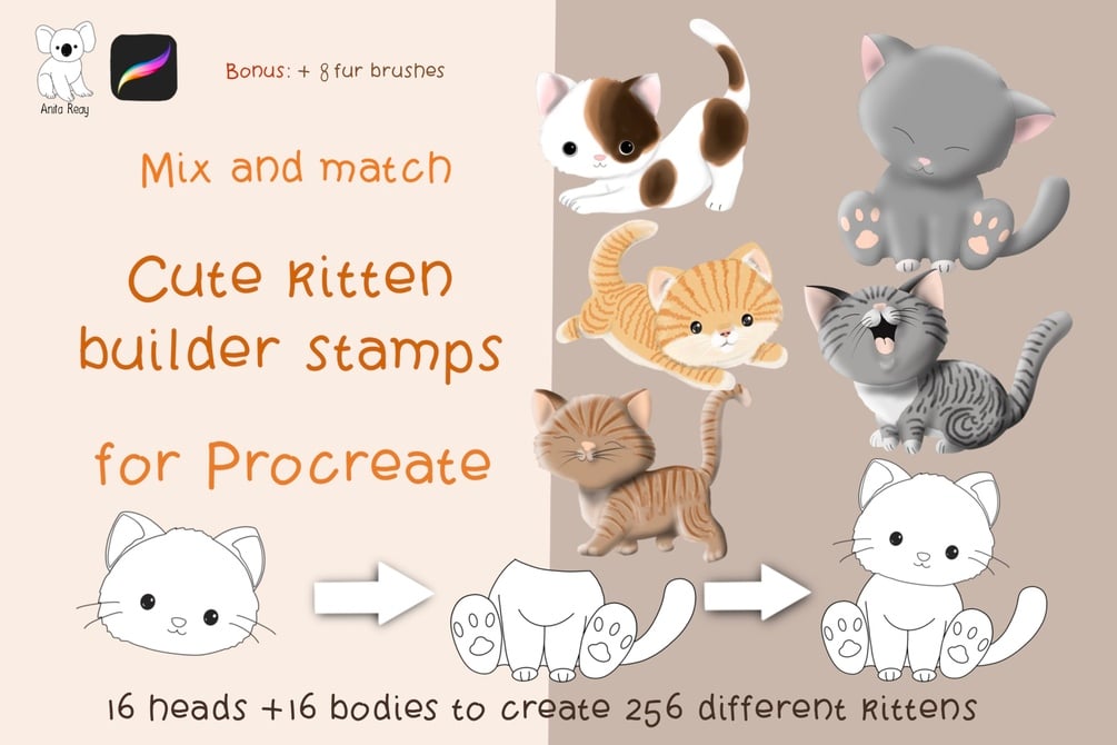 Mix and match - build a kitten stamps for Procreate